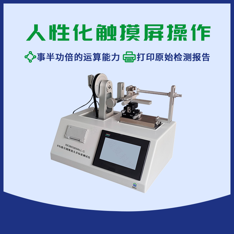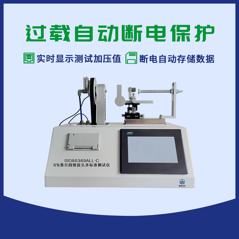 ISO80369All-C6%魯爾圓錐接頭多標準測試儀(yi) 是國家檢驗生產(chan) 廠家產(chan) 品性能的高效檢測設備。由可編程控製器,觸摸屏,力值傳(chuan) 感器,傳(chuan) 動裝置,機載打印機等組成,提供中英文菜單顯示,具備人機對話設定各項參數自動運行測試模式。
